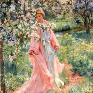 Reading on the garden path (1883) by Albert Aublet (French artist, lived 1851–1938)