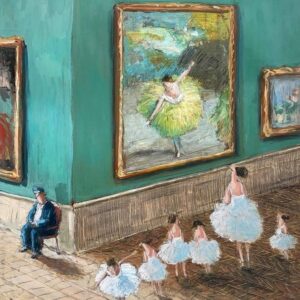 の絵の前で、ベネチアのゴンドラ気分ノリノリな鑑賞者たち。作品の中で自由は弾け出す。