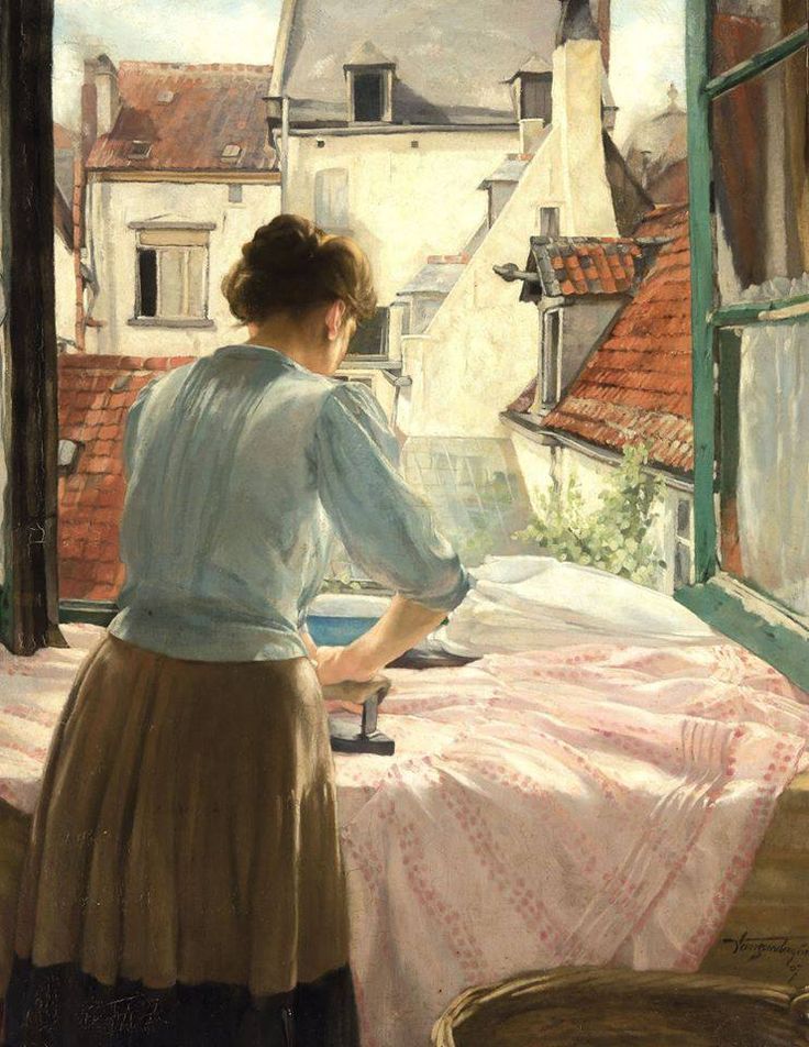 この画家さんはこの女性がアイロンする姿を美しいと思ったから描いたのでしょうね。