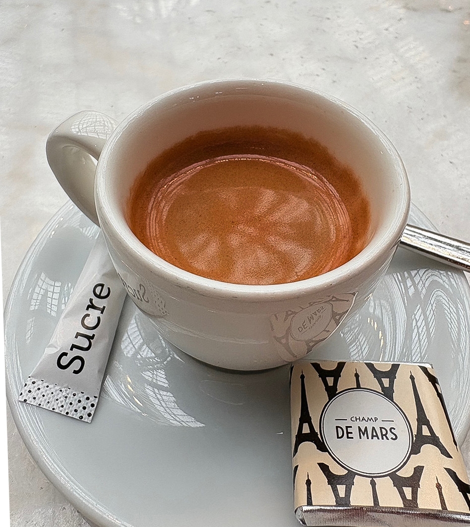 私がお手洗いに行っている間に注文していたエスプレッソが来ていたのですが、ウェイトレスさんがお皿で蓋をしてちゃんと見ていてくださって評価ダダ上がり。こういう気遣い、とてもありがたいですよね!