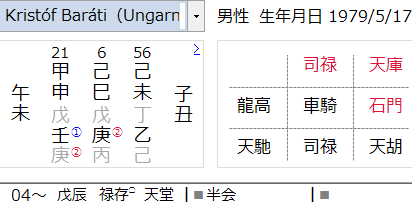 従生財格一点破格。天胡星のある人は音楽に向くと言われたりしますね。
