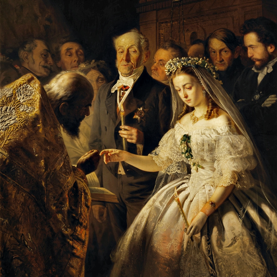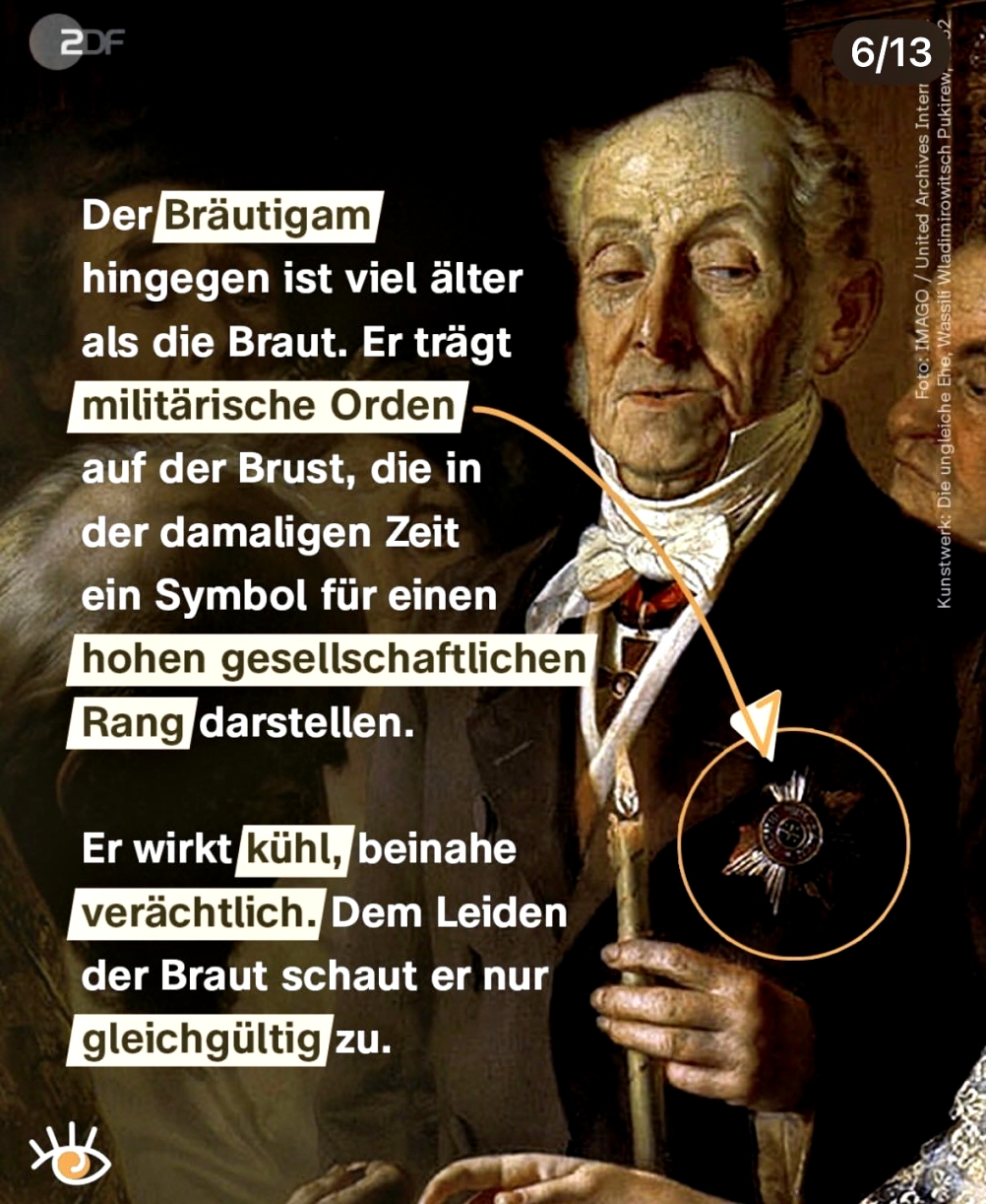 高い社会階級を表す勲章を着けてはいるものの、爺さんと孫くらいの年の差結婚。目もよく見ると焦点が合っていないくらい何というかアレ。