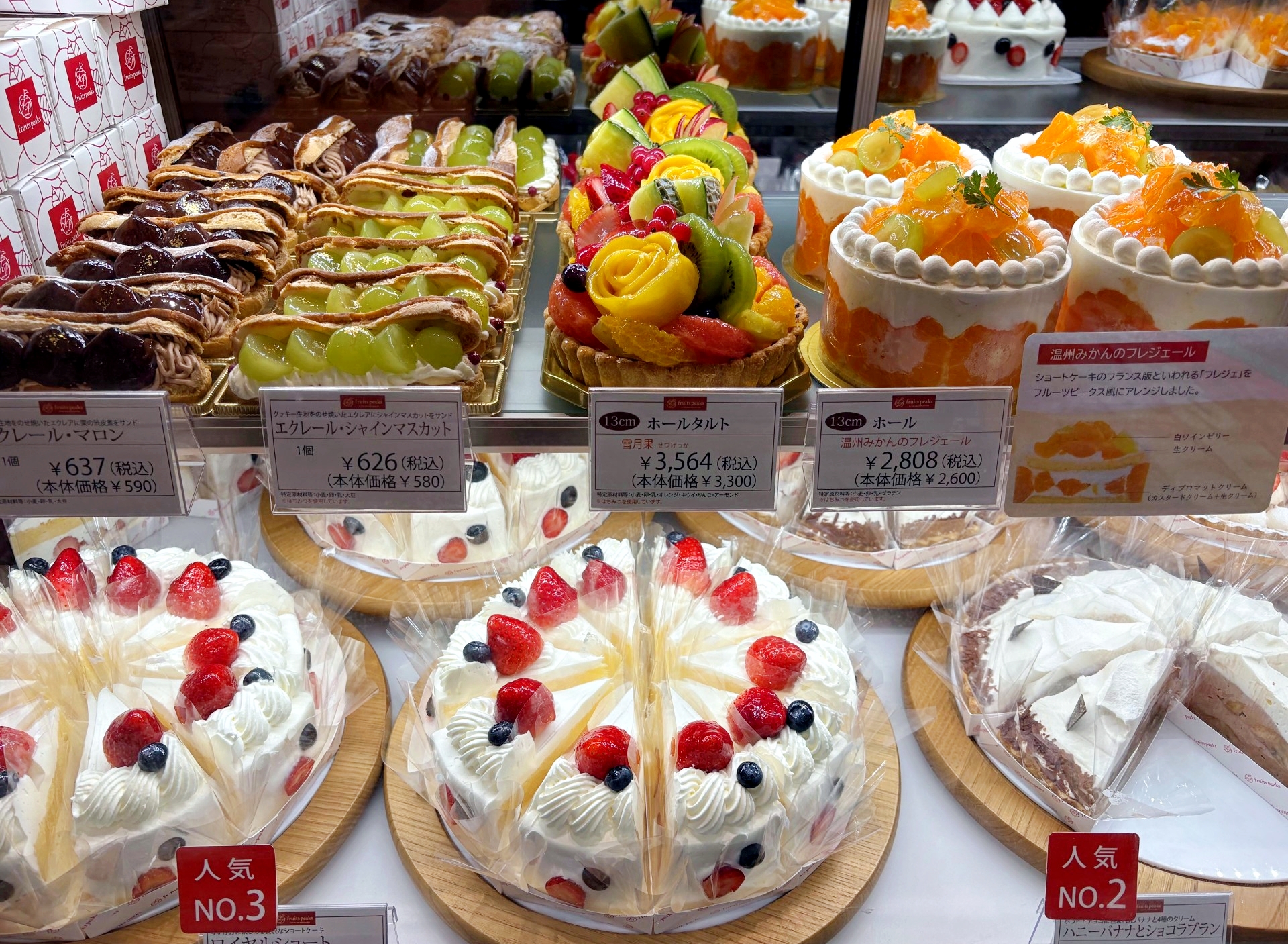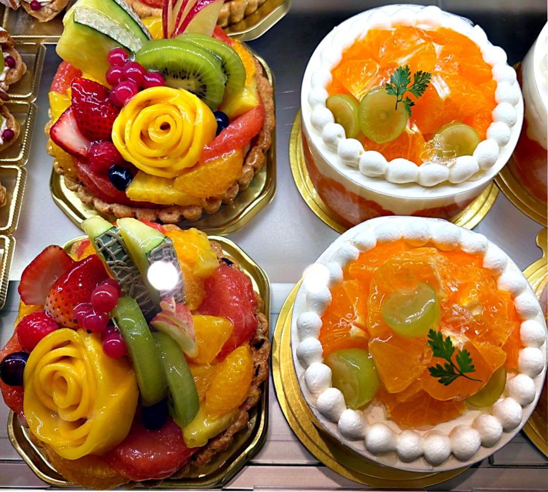なんと見目麗しいケーキたち。子供たちがいたら買って帰るのになあ。
