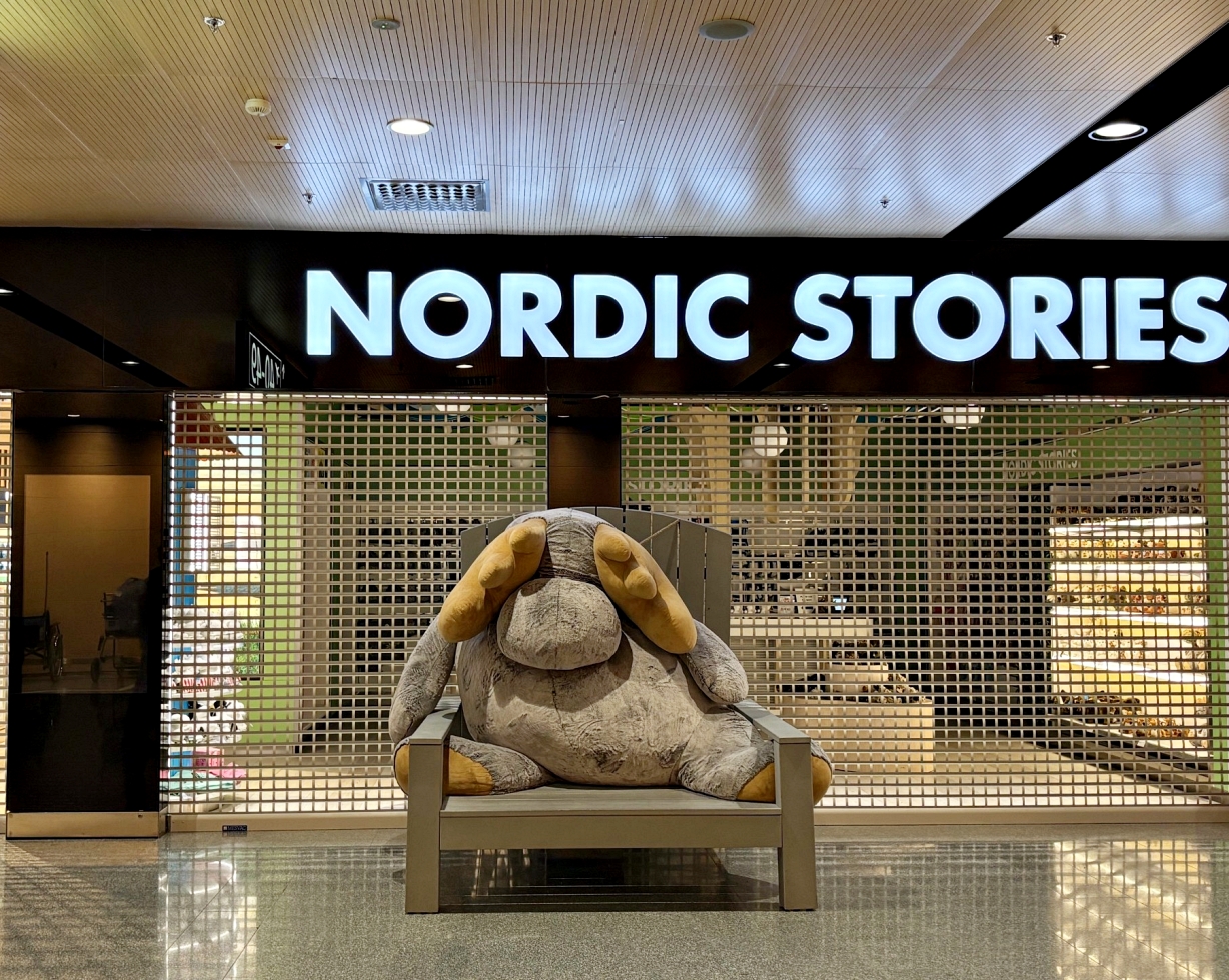 早朝でしたのでお店もカフェ以外は閉まっていて、この巨大トナカイ君も寝ています。