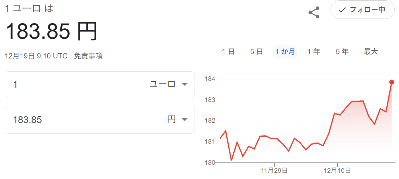それはともかくこのユーロ円の計算をしようと思い本日の為替を見たところ