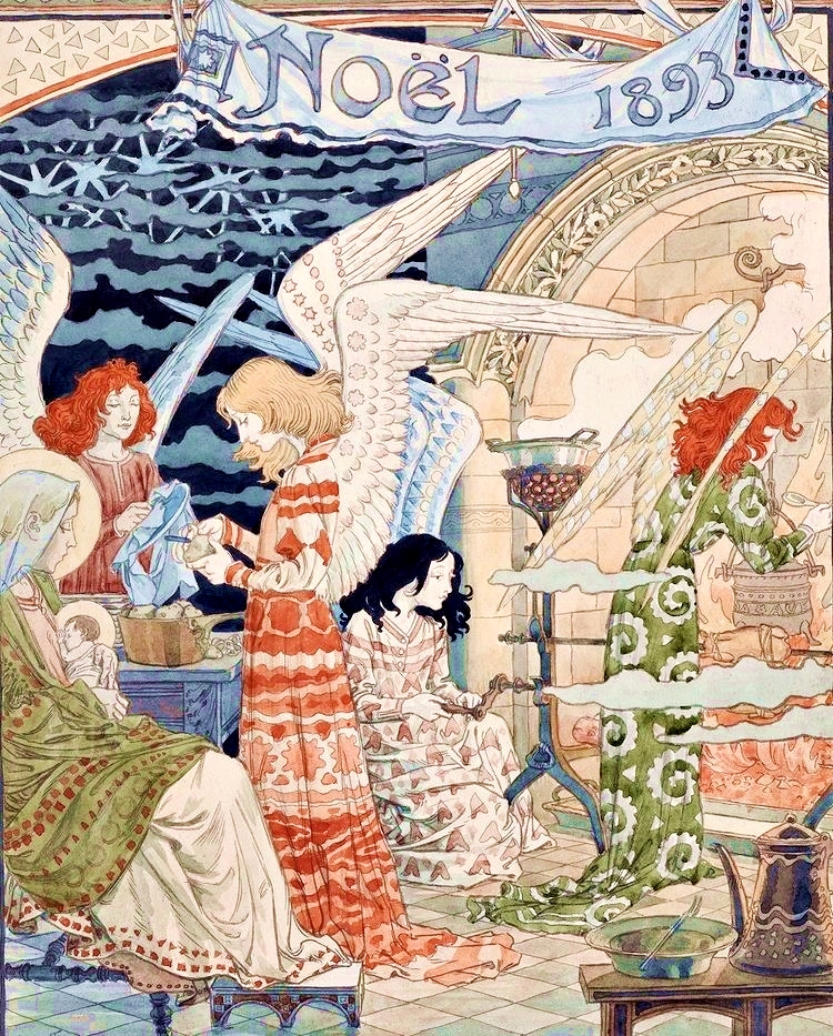 Eugène-Samuel Grasset, La cuisine des Anges, couverture de L’Illustration de Noël,1893