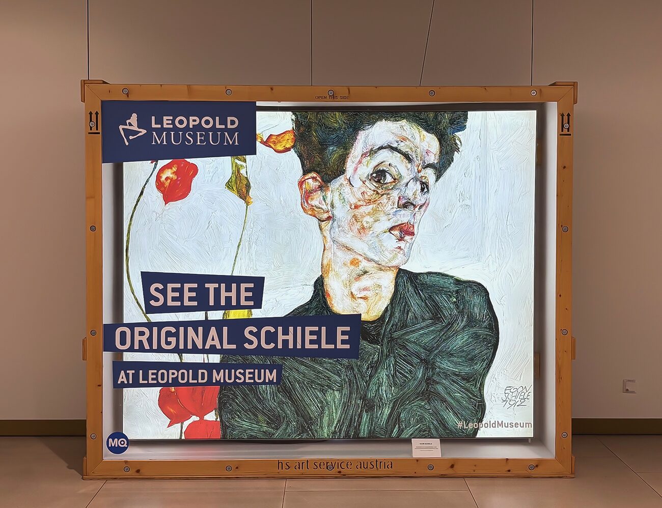 ウィーン空港にあった、エゴン・シーレの自画像を使ったレオポルド美術館の素敵な広告