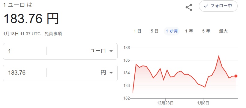 急に上がると急に上がる、毎度のユーロ円相場チャート