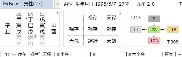 でも最初MrBeast氏の命式を見た時、この方と似てると思ったのだよね。
