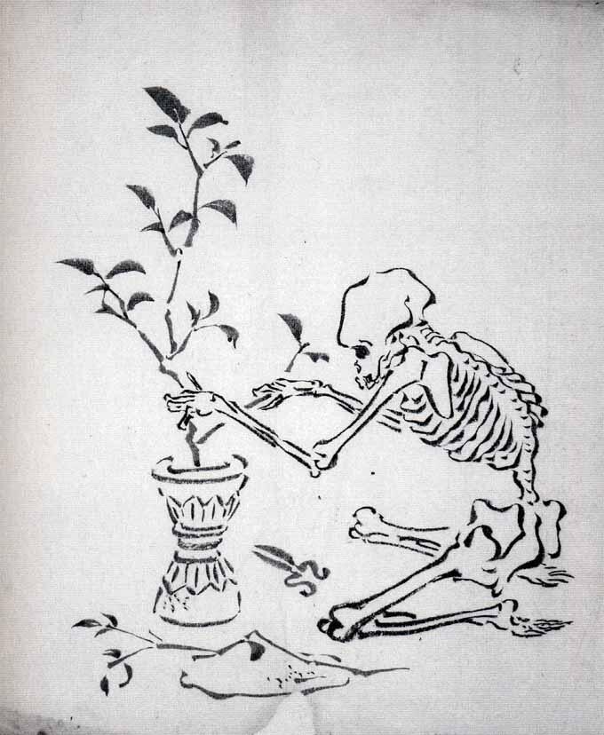 河鍋暁斎《花を活ける骸骨》