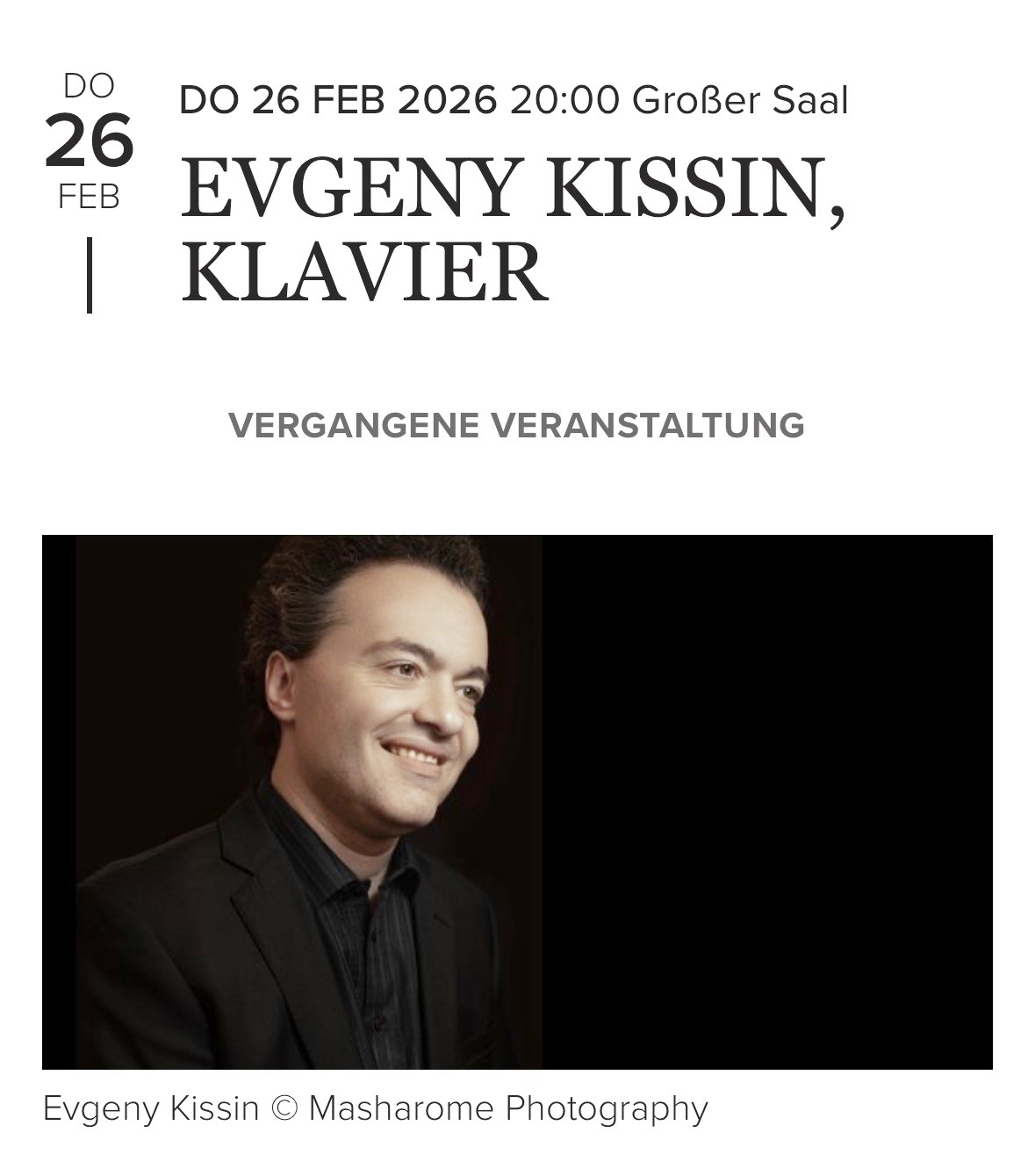 26日(木)には毎度おなじみ、ロシアのピアニストであるEvgeny Kissin/エフゲニー・キーシンさんのコンサートに参上いたしました。