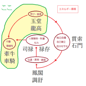 算命学では生年月日から出て来る命式によって、その人が以下の赤で囲った5種類のどの才能を持っているかが分かります。